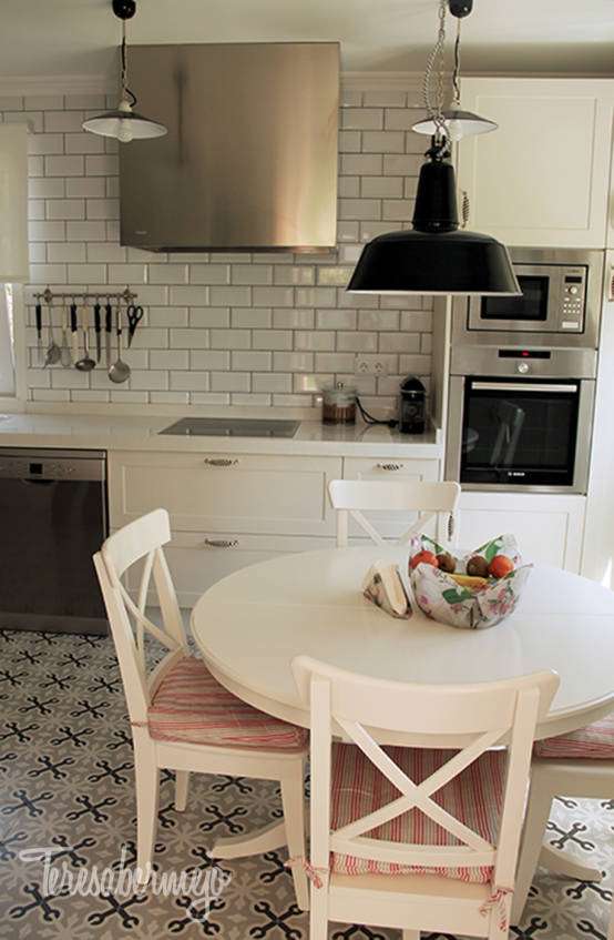 Nos encontramos con un caso similar al primero, pero en esta ocasión, en lugar de utilizarlo para el suelo, lo usamos para las paredes. Los vinilos es una novedad decorativa que ofrece un aire desenfadado y muy agradable. Una forma muy económica de actualizar la cocina.
