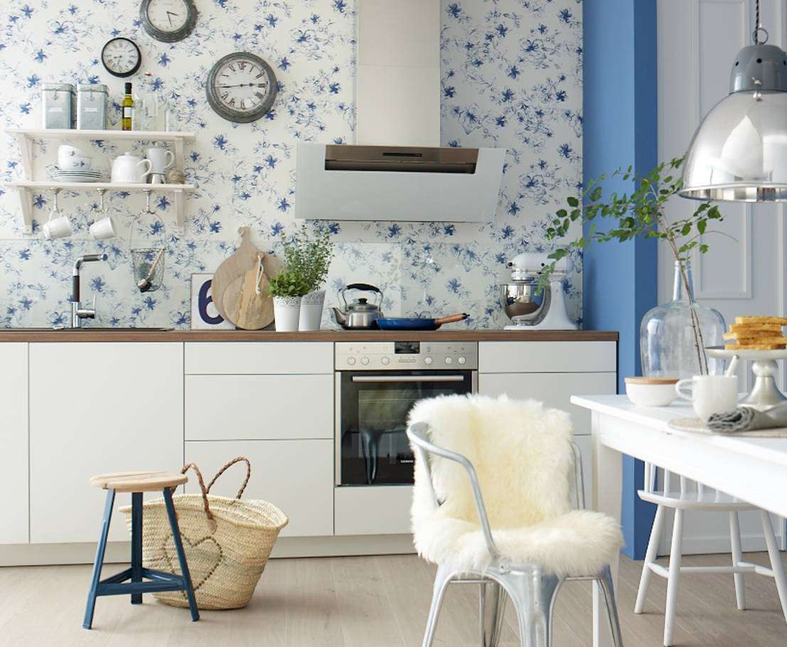 Aunque no es lo más habitual, existen tapizados especiales para las paredes de la cocina que soportan las condiciones de este espacio (altas temperaturas, suciedad, etc.). Es una forma rápida de dar un nuevo aire a esta estancia.