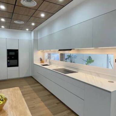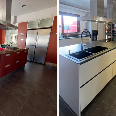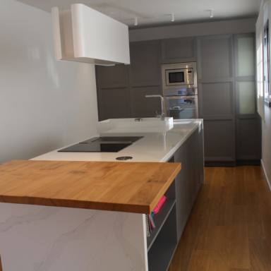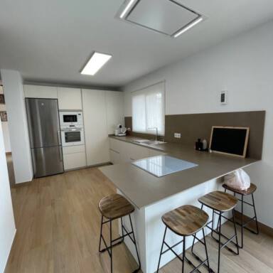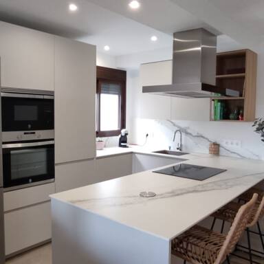 Kitchens in Seville and all the province. Cocinova carries out the design, manufacturing, and installation of Kitchens in Seville and all of Andalusia. We design, transport, and install all the elements of your kitchen, recommending manufacturer features that best fit your budget and requirements, we take into account your physical characteristics (height, build) so that moving around your kitchen is as comfortable as possible. Only then can we assure you complete peace of mind and our commitment to Cocinova.