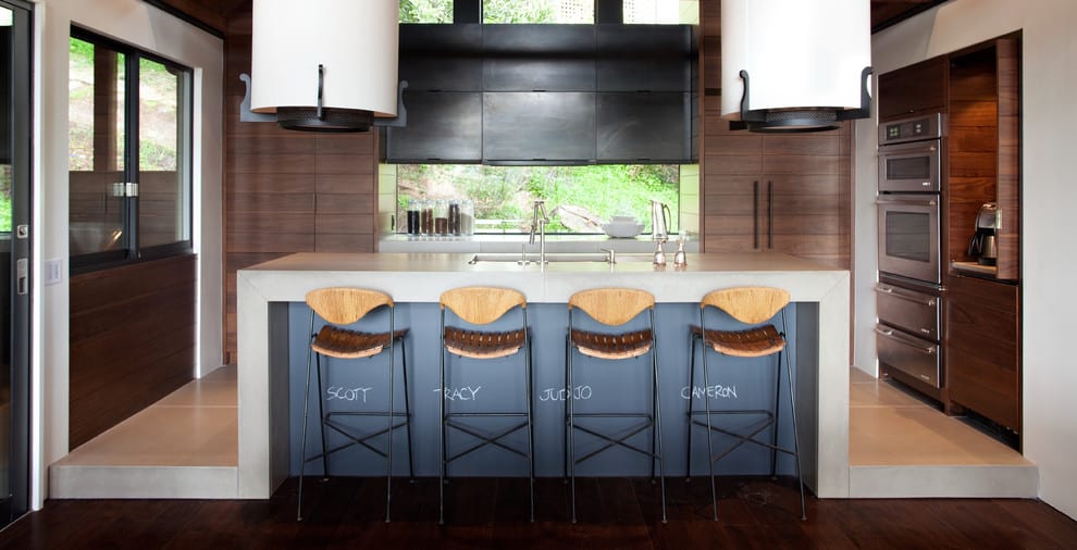 En la zona interior de una isla central, que actúa en muchas ocasiones como lugar para aperitivos y cenas ligeras, la pizarra puede servir para colocar a los comensales en el sitio correcto.