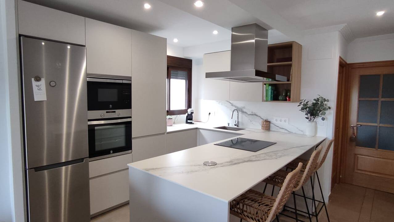una estancia abierta al resto de la vivienda pero con el área de trabajo bien agrupada. La encimera se