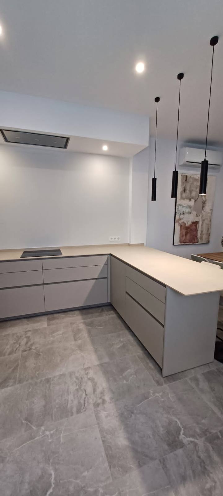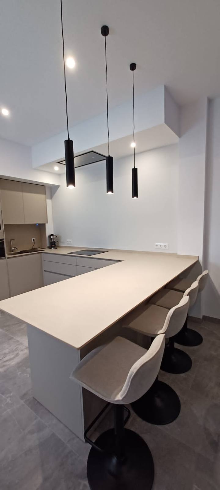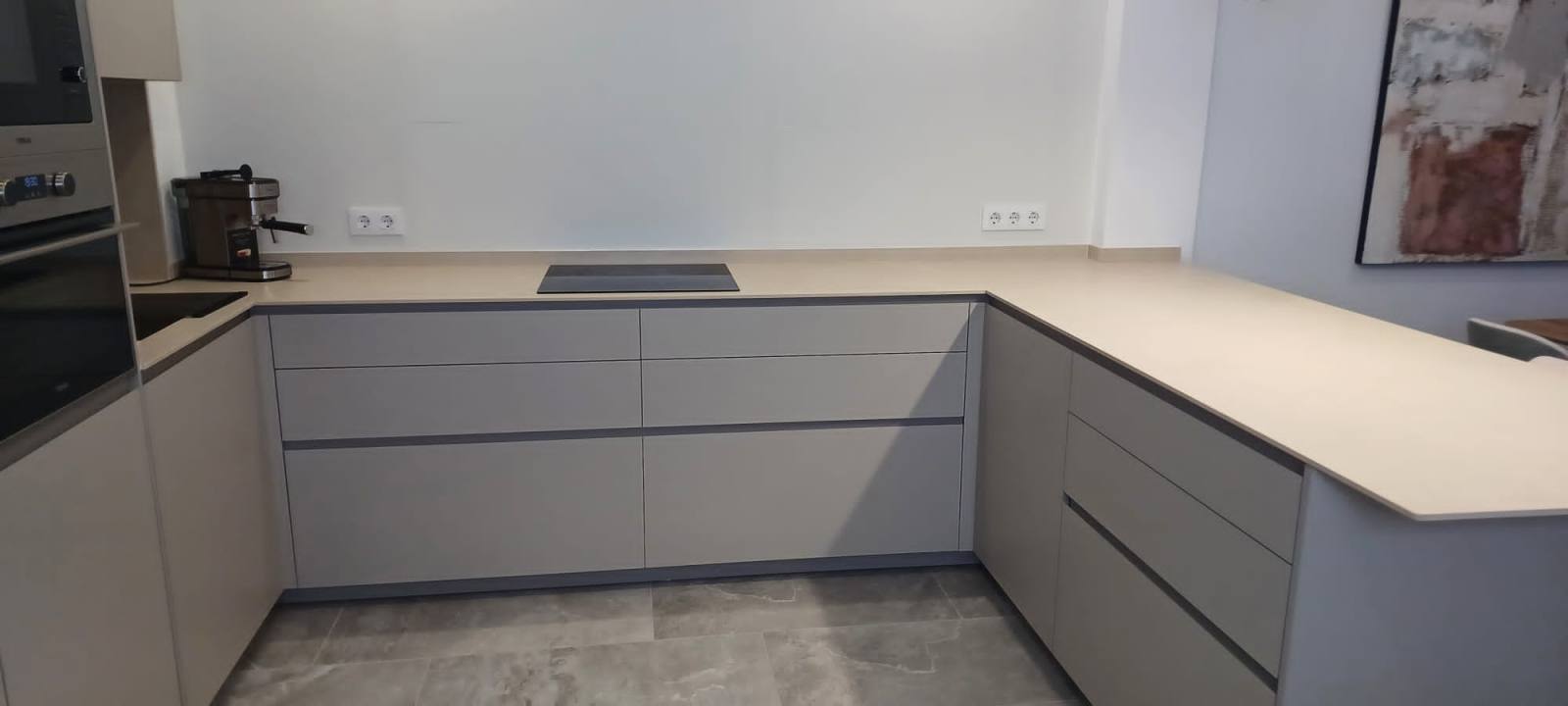 En Cocinova, nos enorgullece presentar otro de nuestros emocionantes proyectos, esta vez en Fuentes de Andalucía. En esta hermosa cocina con campana Fim, hemos instalado una gama de muebles en un sofisticado color NUDE, complementado con una encimera porcelánica con un canto de 1,2 cm. Este proyecto, al igual que muchos de nuestros proyectos «KM 0», ha implicado una gestión meticulosa de las preinstalaciones y una falsa viga en la obra, que se ejecutaron a la perfección para dar vida a esta espectacular cocina.