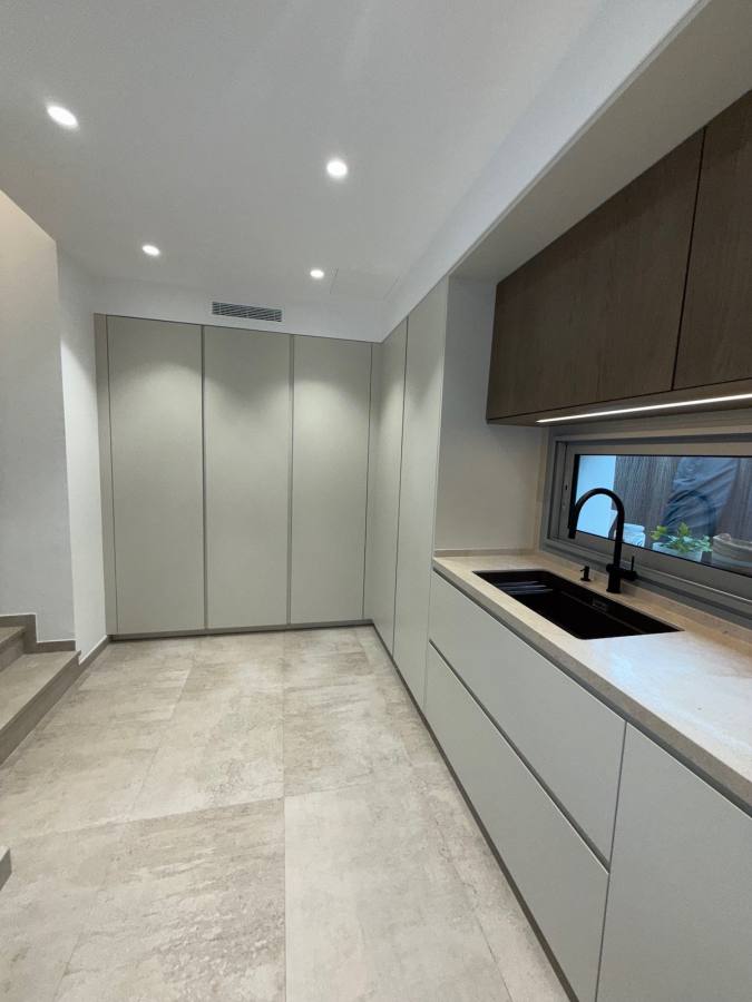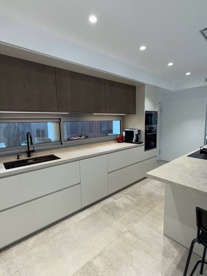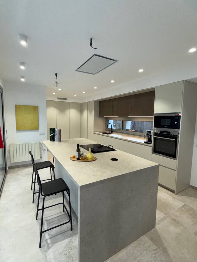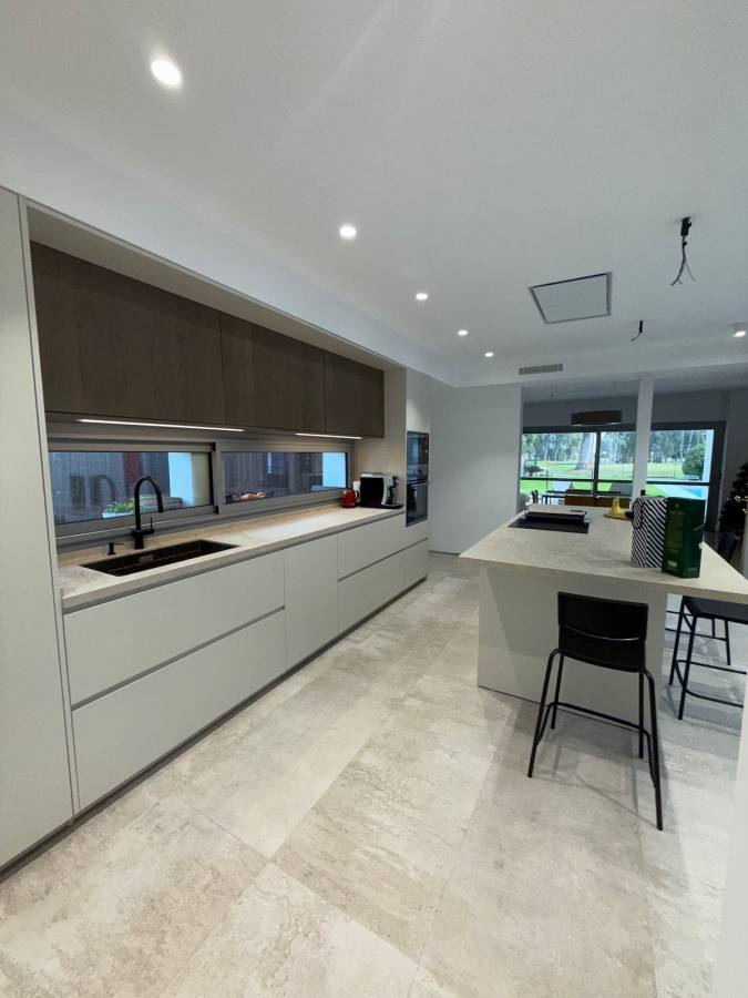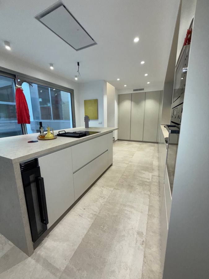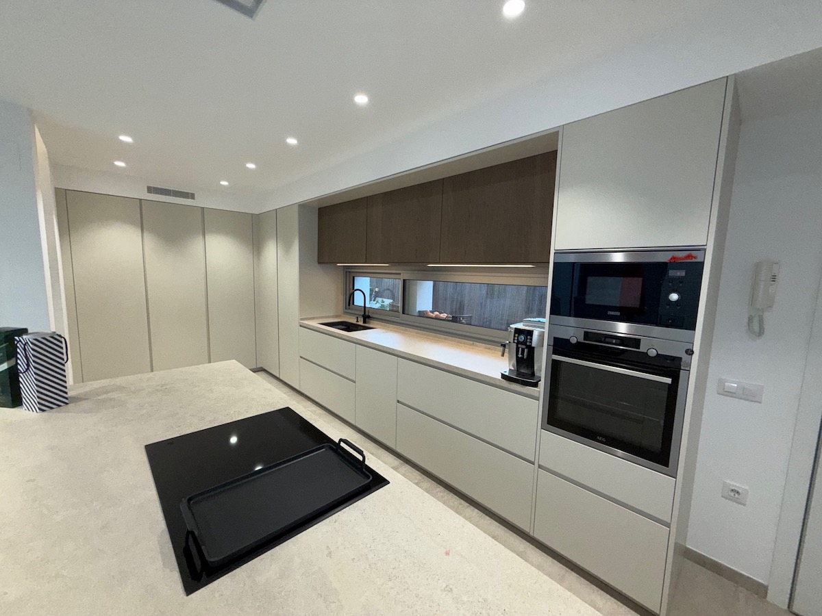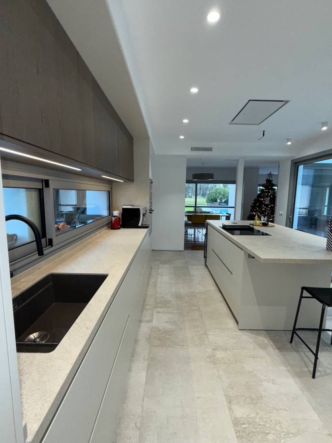 En Cocinova, estamos orgullosos de haber creado esta cocina con encimera abujardada instalada en Sevilla. Este proyecto combina un diseño contemporáneo con materiales de alta calidad, logrando un espacio acogedor y funcional que se adapta perfectamente al día a día de sus propietarios.