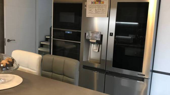 La cocina lleva electrodomésticos Electrolux y un imponente frigorífico Lg Instaview Door-in-Door. Este aparato es el que más sorprende a todo el que observa por primera vez la estancia, pues se trata de un dispositivo de alta gama que incorpora una puerta de cristal para ver los alimentos en el interior sin necesidad de abrirlo.