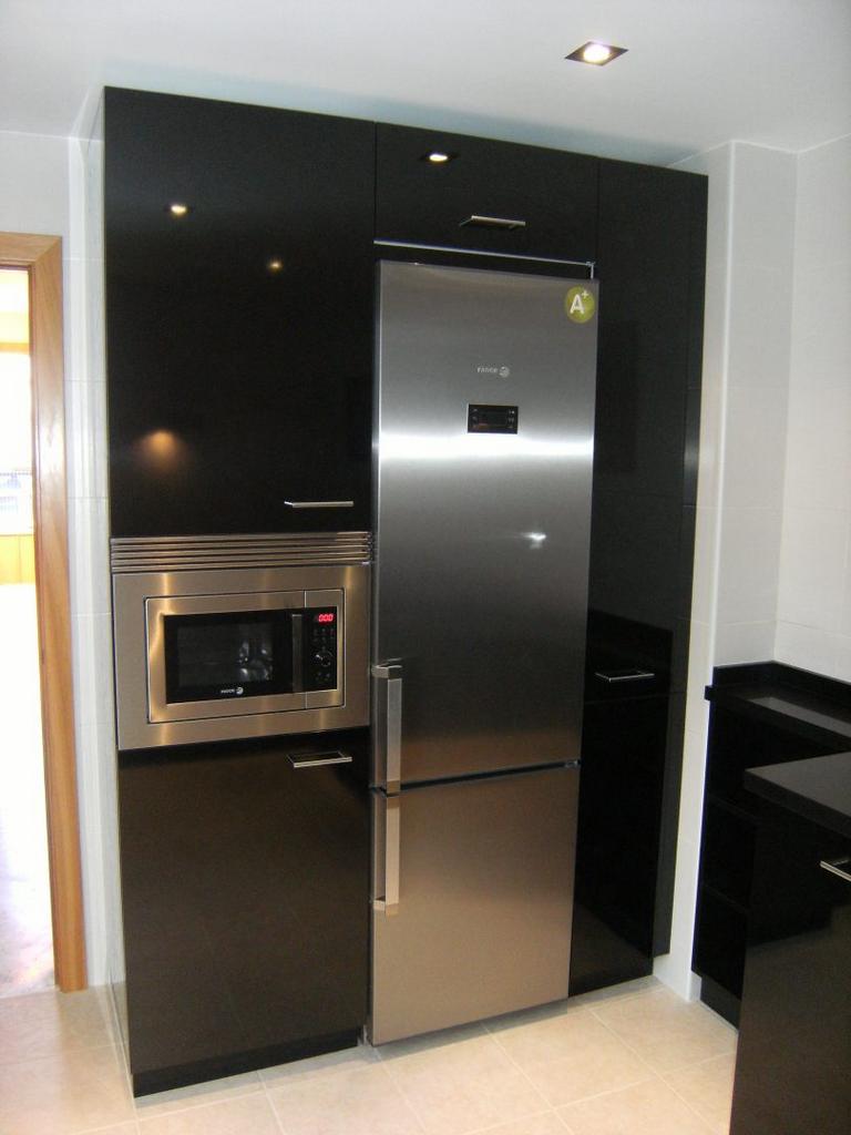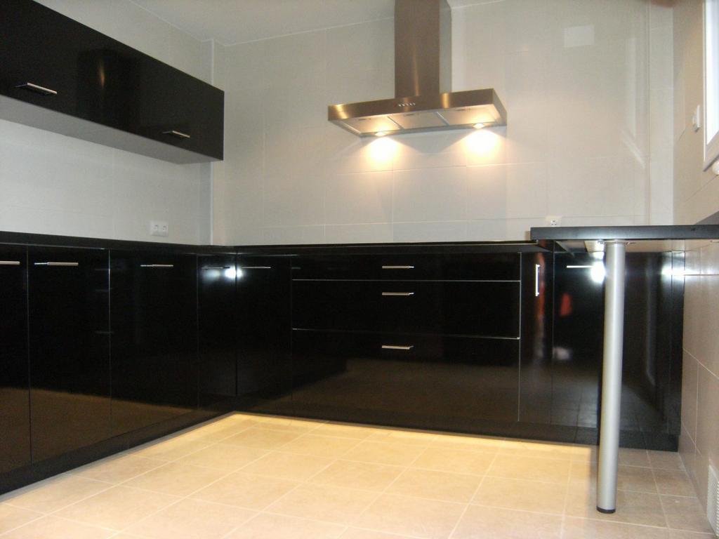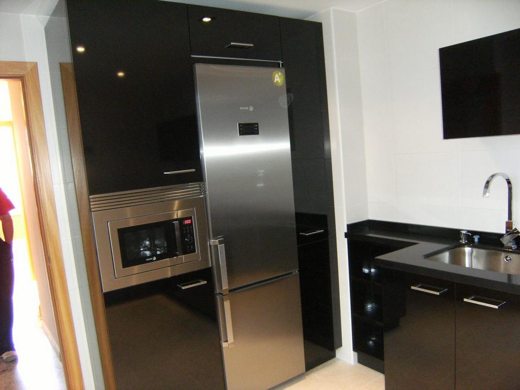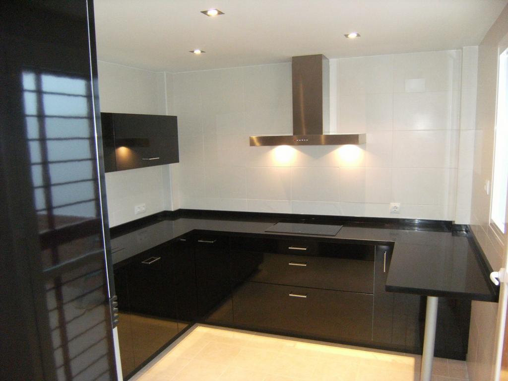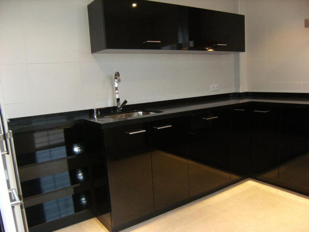 Como podéis comprobar es una cocina de formica negra adaptada a un espacio reducido que aprovecha de forma magistral todos los huecos con una distribución optimizada con una relación calidad/precio excelente.