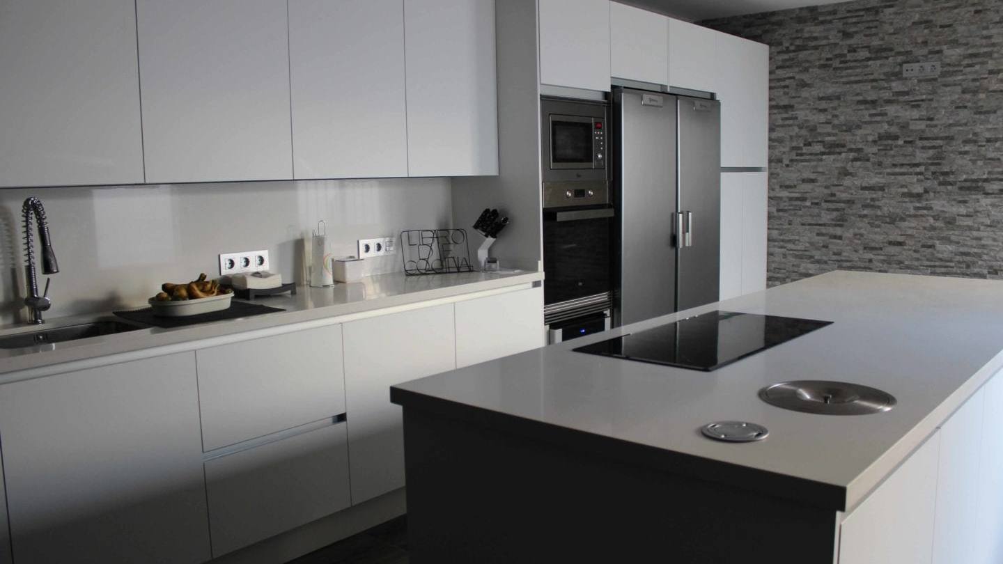 Cocina en Carmona para una joven pareja que vino a nosotros recomendada por unos amigos suyos que ya fueron clientes nuestros anteriormente. La instalación de esta nueva cocina en Carmona fue encargo de Alfonso y Verónica, que desde el primer momento que acudieron a nosotros tenían la idea clara de que su cocina debía ser blanca para ir a juego con las puertas de su casa, así como hacer contraste con el suelo y las paredes de la cocina.