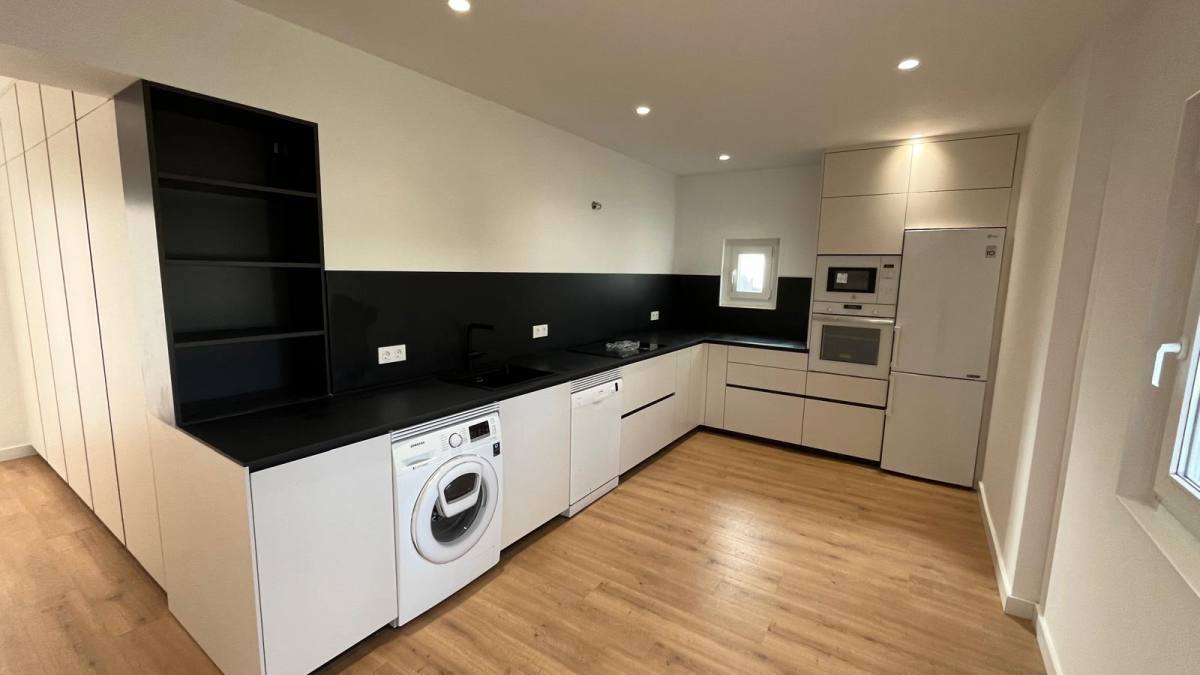 El juego de blancos y negros es el alma de este diseño, logrando un equilibrio perfecto entre modernidad y atemporalidad. Cada detalle, desde los acabados mate hasta la distribución inteligente, refleja la calidad y el cuidado que Cocinova y Pérez Navarro Interiorismo ponen en sus proyectos. Esta cocina no solo es un lugar para cocinar, sino un espacio donde la estética y la funcionalidad se mimetizan para inspirar.