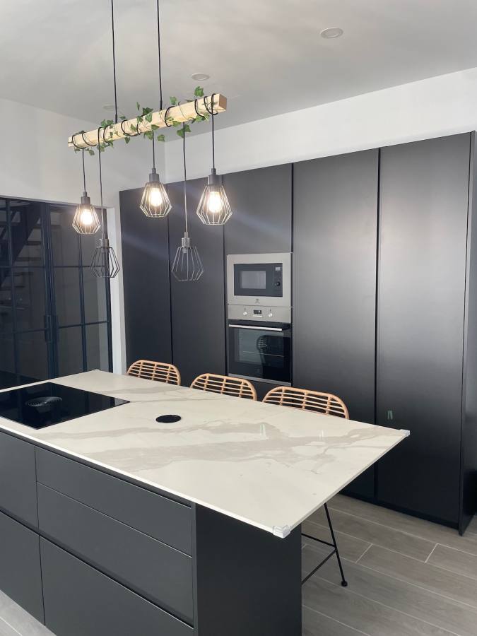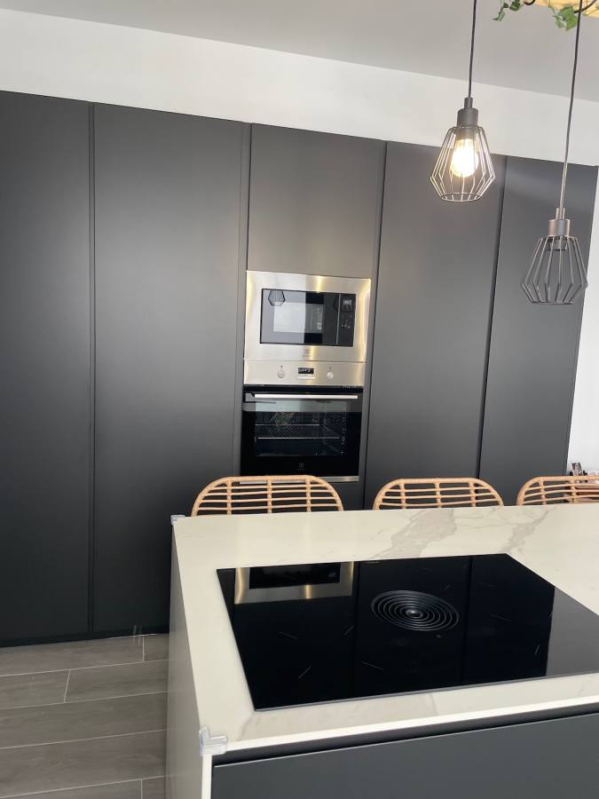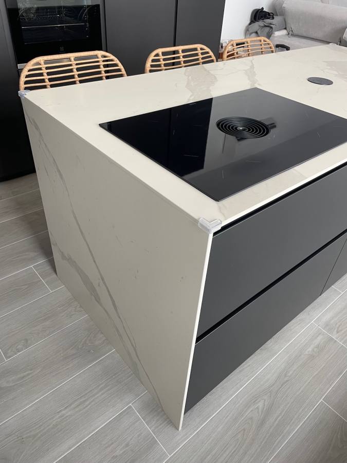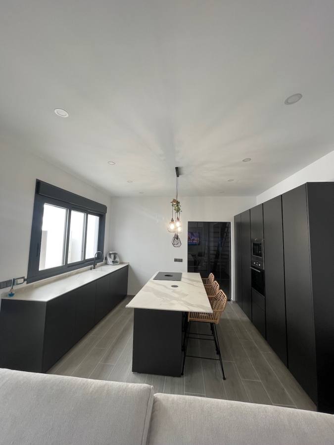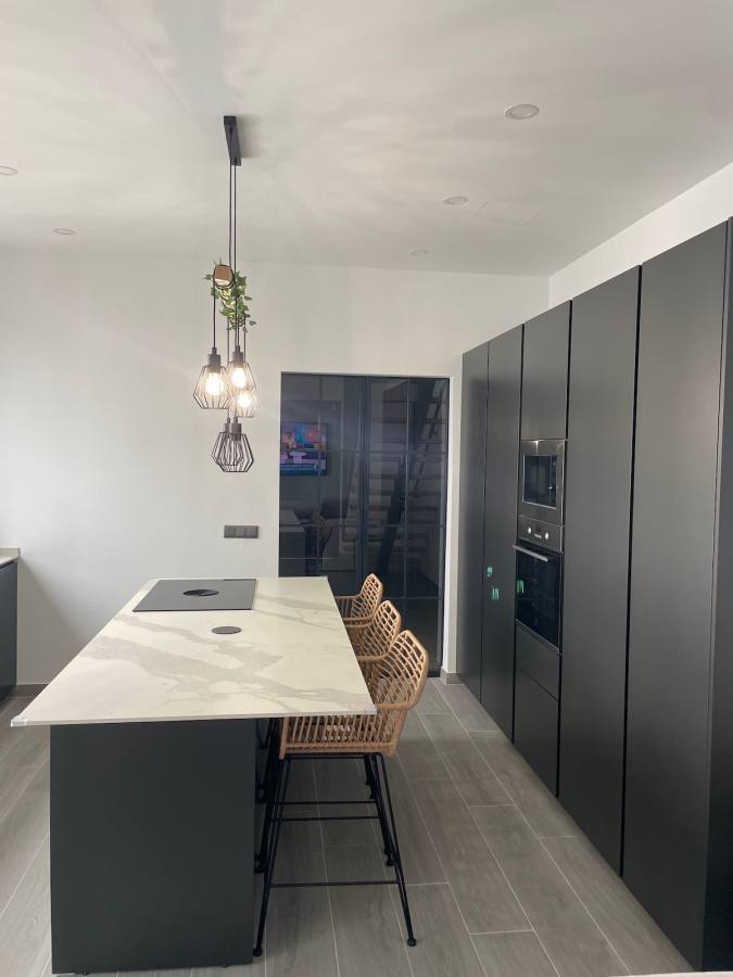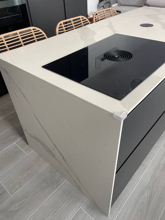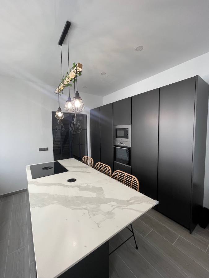 En esta ocasión, nos desplazamos a Carmona para realizar un proyecto excepcional que destaca por su elegancia y funcionalidad. Esta cocina lacada grafito, modelo CADETE de Dica, combina a la perfección con una encimera porcelánica veteada, modelo Blanco Statuario de LAMINAM. Desde Cocinova, estamos encantados de presentar esta cocina lacada grafito que no solo es visualmente atractiva, sino también altamente práctica.