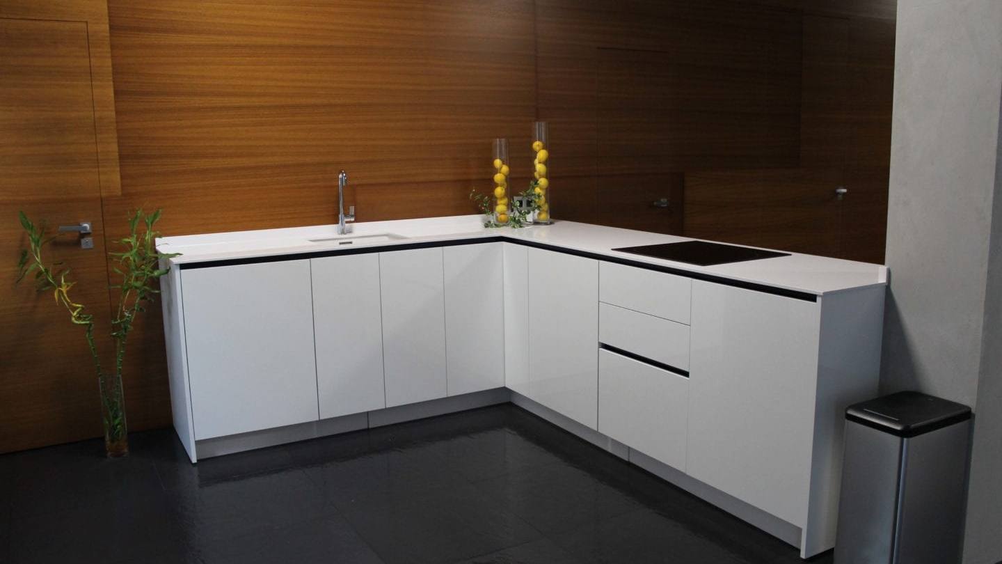 Esta cocina para cochera está compuesta por una cocina Xey programa Top Line, en su modelo Murano S1, estratificado AR+ by Formica, en color blanco brillo. Una cocina, que cómo podéis observar, quedaría genial en cualquier espacio, y que además cuneta con una garantía de 12 años.