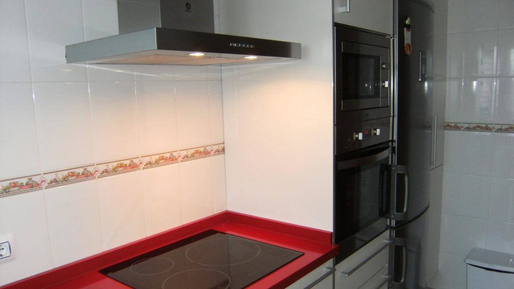En el apartado del equipamiento de electrodomésticos nuestros amigos se decidieron por un frigorífico Electrolux, un horno y microondas Teka. El lavavajillas y la placa de inducción son de la marca Balay, al igual que la campana de la cocina.