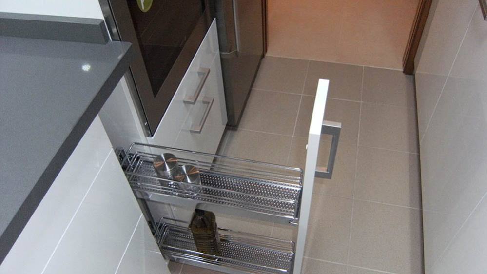 También podemos observar detalles como los muebles elevables con sistema aventos de blum, de gran precisión y sin mantenimiento.