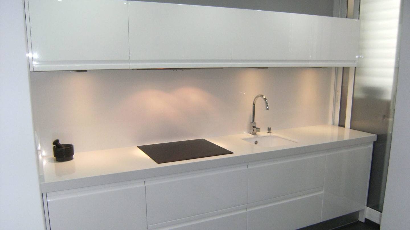 Además le instalamos un sistema de LEDS creado por Cocinova, de bajo consumo energético e iluminación espectacular. Dando un ambiente de limpieza, y que además es una garantía antibacteriana como factor común de esta marca de encimeras.