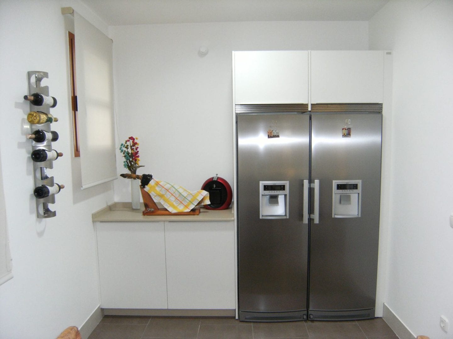 Otra anécdota es que Miguel Ángel nos planteó un reto, conseguir que no le diese la puerta en el dedo gordo del pie cuando lo abría con las chanclas en verano, y lo conseguimos, le instalamos un frigorífico Electrolux con zócalo inferior y pedal de apertura, además de un congelador, con dispensador de hielo y agua, con gas y sin gas.