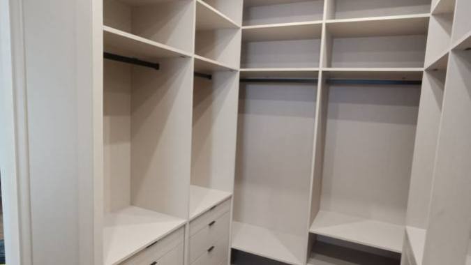 El espectacular vestidor, que ha sido instalado en Mairena del Alcor, destaca por su ajuste perfecto hasta el techo y sus costados vistos con un toque decorativo. El vestidor está cuenta con barras de diseño, en color gris antracita, cajoneras con autofreno y un sinfín de baldas para colocarlo todo a la vista y siempre ordenado.