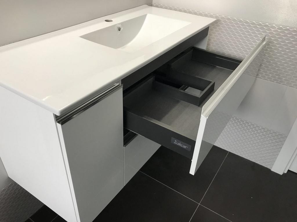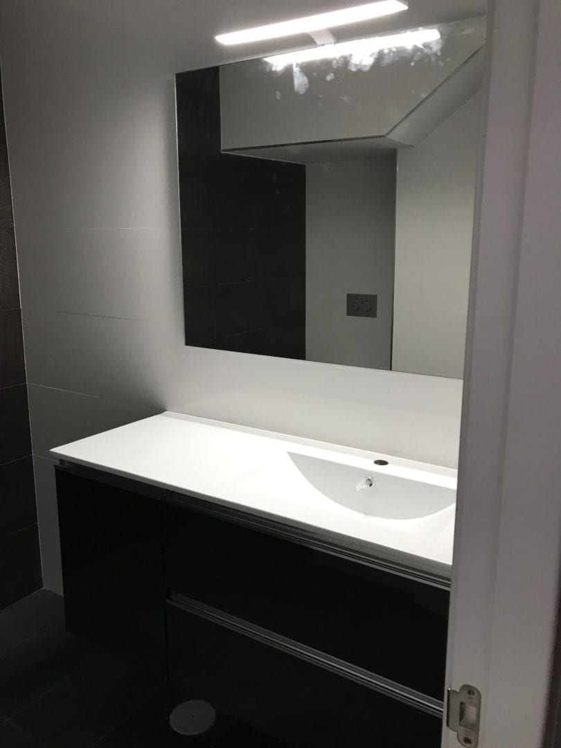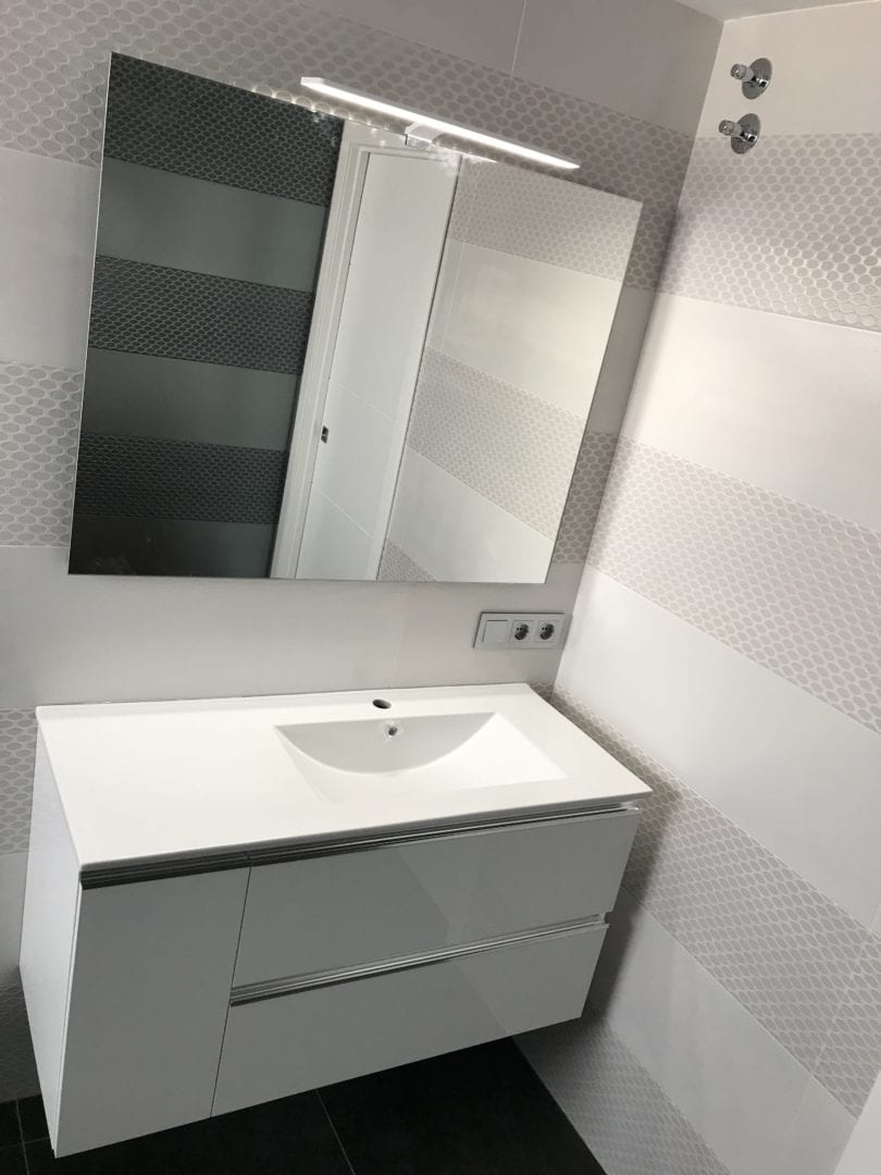 El trabajo para Alfonso ha consistido en la instalación de muebles de baño en color blanco brillo con cajones de extracción total y sistema uñero.