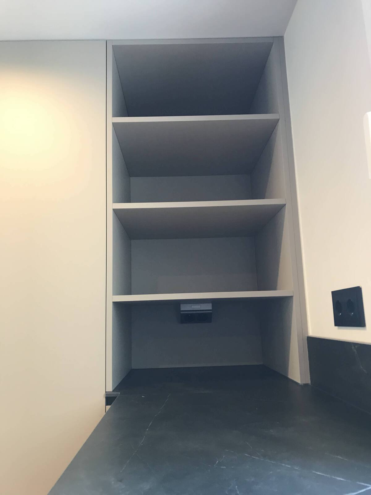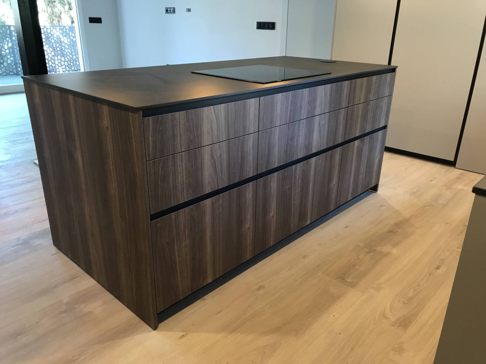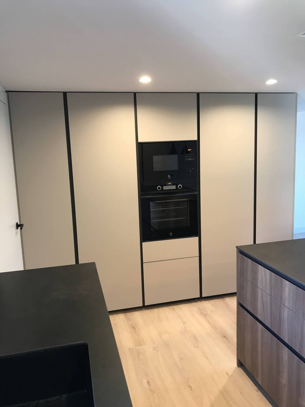 A primera vista lo más destacable en las imágenes es la perfecta combinación de los colores nude y nogal. A su vez, es una cocina Dica que guarda un secreto, un pequeño trampantojo. En gastronomía, y también en arte, los trampantojos son elementos que aparentan ser lo que realmente no son. Y aquí lo vemos con uno de los muebles.